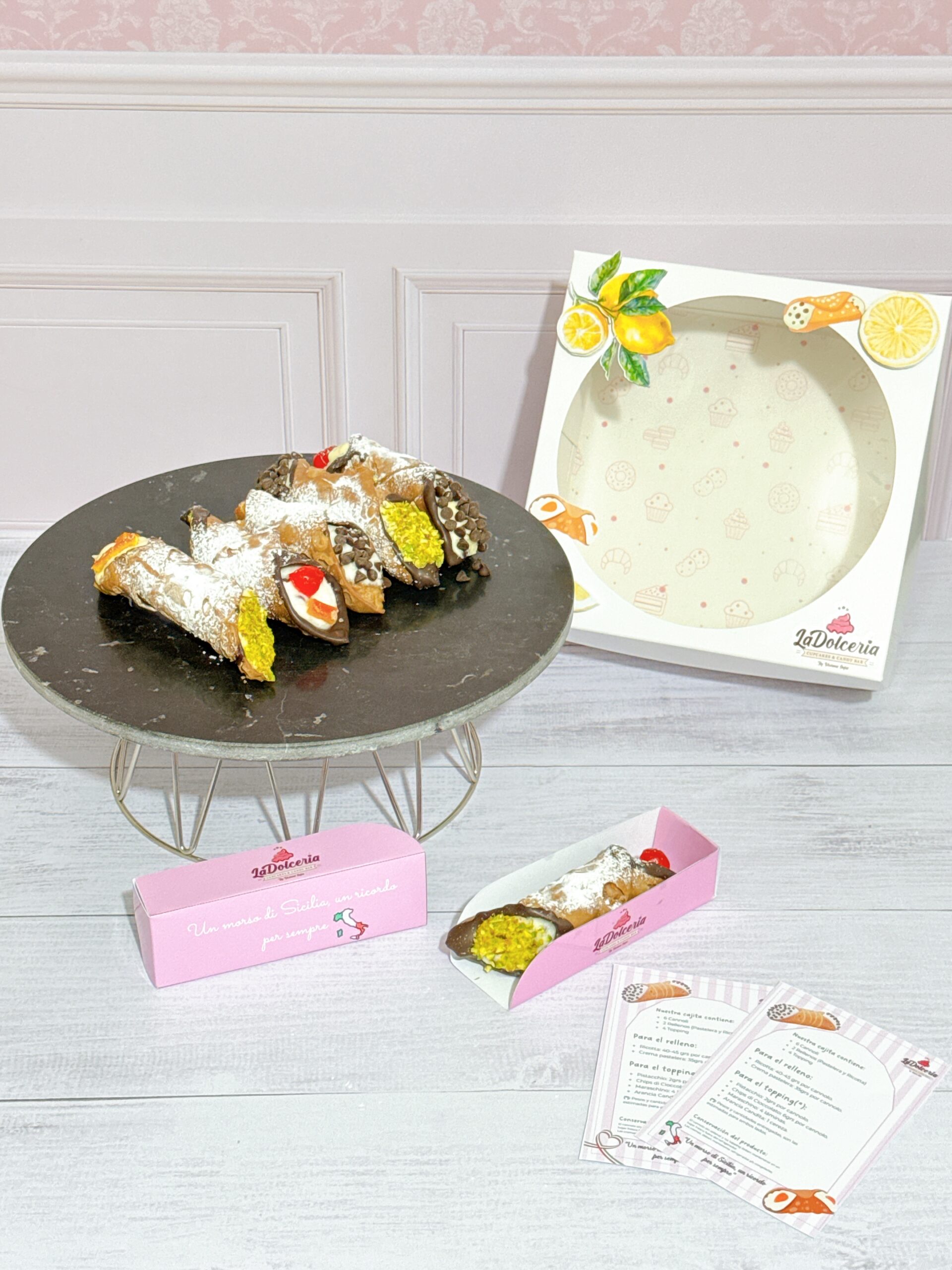 - Caja de Cartón con Cannoli Rellenos y 2 topping c/u.