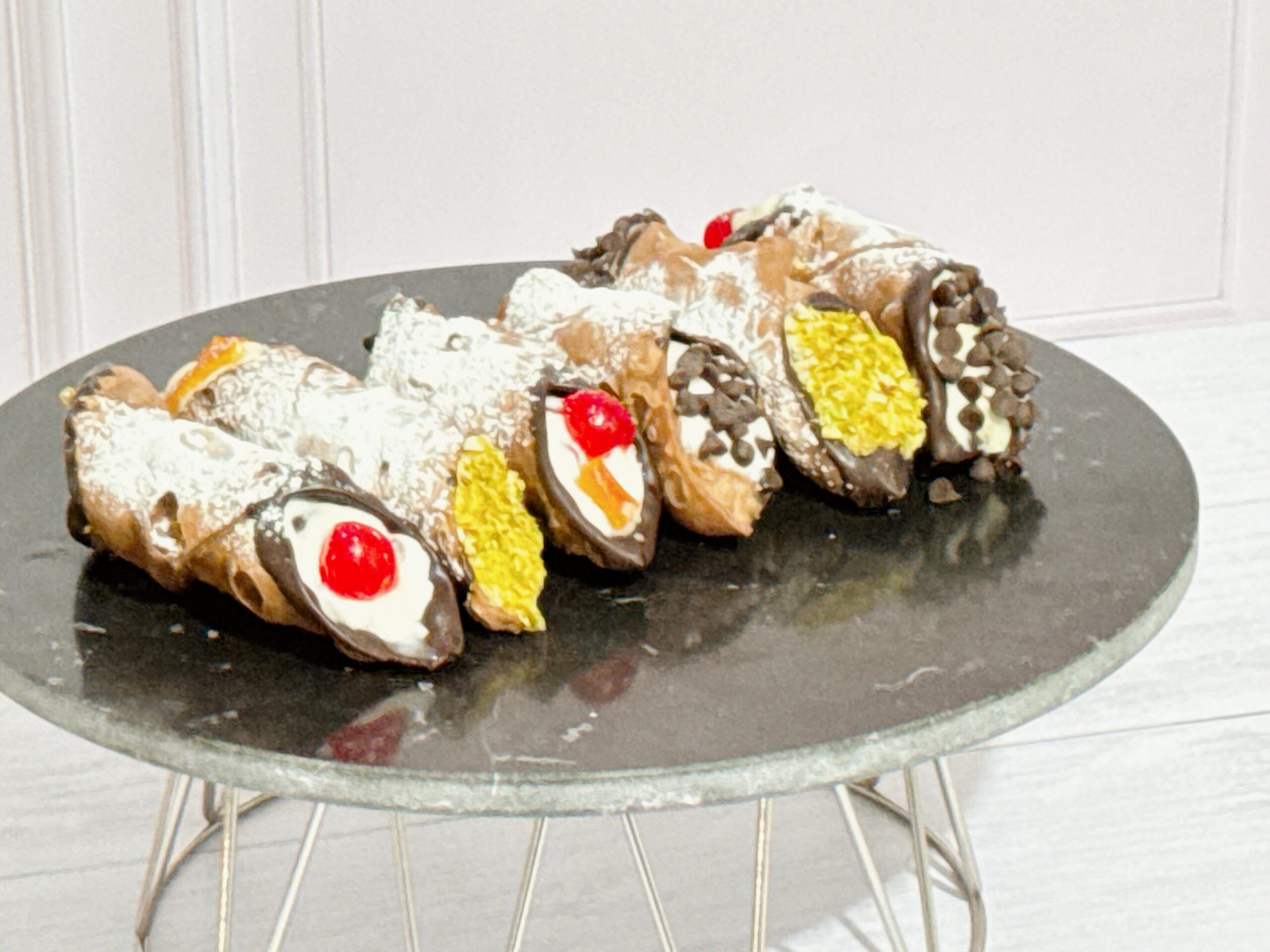 - Caja de Cartón con Cannoli Rellenos y 2 topping c/u.